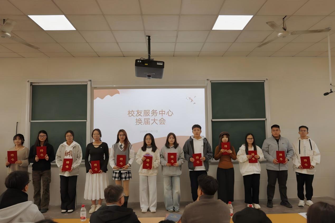 随后,会议进入聘书颁发环节。鲁爱臣主任及主席依次为各部门负责人和干事颁发聘书,每一份聘书的传递,都承载着校友服务中心成员对未来工作的期许,现场掌声此起彼伏,氛围庄重而温馨。